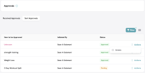 With the growth of your business and client base, you need a quick reminder of exactly what the client was offered. Simply click Action and then select ‘Details’ to see what was approved (under ‘Sent Approvals’) and the timeline of actions taken under ‘Approval History’.