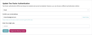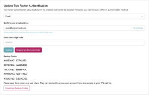 You can also ‘Regenerate Backup Codes’ should you misplace the codes you received when signing in to your account for the first time. When you click the regenerate button, it expands, as shown below, allowing you to ‘Download Backup Codes’.