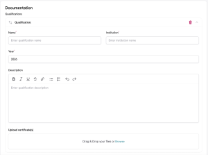 The ‘Add Qualification’ button adds more slots, which you can populate with your relevant qualifications. Hit the ‘Save Qualification’ button to add them to your profile.