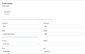 The Profile tab is dedicated to your personal information. This section allows you to add a photo (which will be displayed on your profile in the marketplace) and ensure your personal and contact information are up to date.